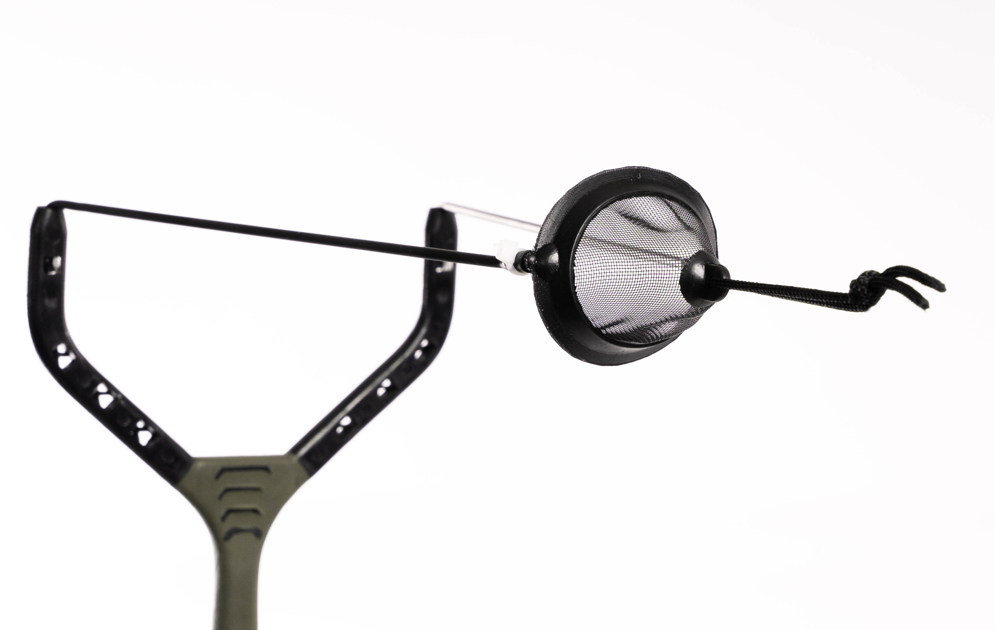 S tímto “mini” prakem poměrně snadno a přesně dostanete malé, lehké červíky i hodně drobný partikl na požadované místo. Prak má jednoduchou, ale osvědčenou konstrukci a je samozřejmě opatřen gumovým košíčkem. U tohoto “červového” košíčku byl kladen důraz na velmi jemnou síťku a úzký tvar aby s ním bylo nastřelování červíků co možná nejefektivnější. Košík má průměr 4,5 cm a hloubku 3,5 cm a je na zadní straně klasicky opatřen poutkem, díky kterému je míření, natažení i samotné vystřelení krmení mnohem jednodušší. Velkou výhodou tohoto praku je, že je k němu k dostání kompletní sada náhradních dílů ( ZF-7518 ), která obsahuje košíček, gumu i aretační pásky, takže pokud se Vám něco z těch spotřebních částí opotřebí, nebo poškodí, výměna nebude problém.