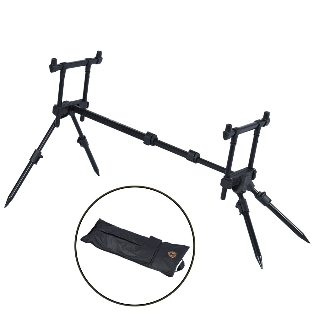 Ideální parťák na krátké výpravy, kde potřebujete minimalizovat svou výpravu, nebo na místa kde jdete za kapry pěšky. Po sestavení poskytuje stojan krásných 85 cm mezi hrazdami, což je dostatečné pro snadné umístění vašich prutů. Stojan se snadno a rychle staví a je dodáván včetně hrazd na dva pruty. Součásti stojanu je praktický obal. Hlavní středová část stojanu je teleskopická a skládá se ze tří dílů, díky tomu je ultrakompaktní a nezabírá více místa ve vaší výbavě.