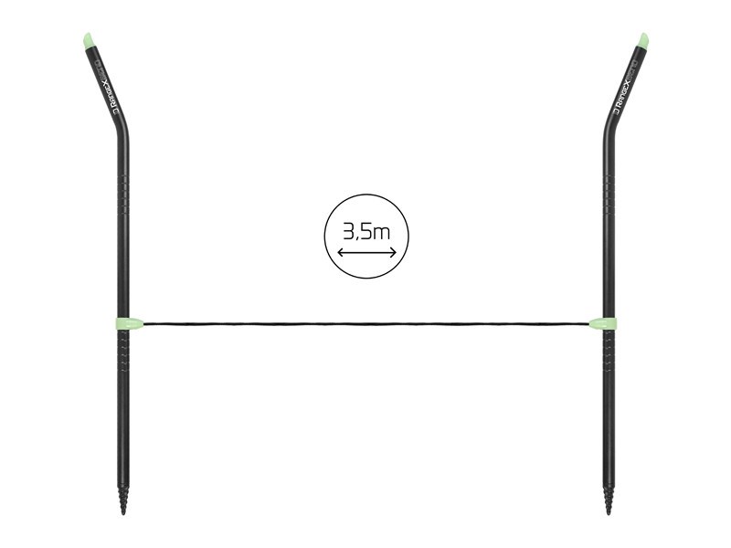 RangeX BEND se skládá ze dvou hliníkových tyčí se zářezy. Tyto zářezy slouží k tomu, aby se do nich vlasec či šňůra ukládaly a během vyměřování vzdálenosti tak nehrozí nežádoucí sklouznutí vlasce z tyče. Pro ještě vyšší spolehlivost jsou horní konce tyčí zahnuté, aby se zabránilo vyskočení vlasce při manipulaci. Pro snazší používání v šeru či tmě tyče disponují fosforeskujícími koncovkami, které se po nasvícení rozzáří. Kvůli lepší manipulaci při zapichování do země, jsou distanční tyče na spodním konci vybaveny pevným hrotem se závitem. Samozřejmostí je vyměřovací provaz o délce 3,5 metry, který je na obou koncích opatřen oky pro uchycení o tyče. V základu RangeX BEND dostanete v praktickém textilním pouzdře tak, abyste měli vždy vše pohromadě.