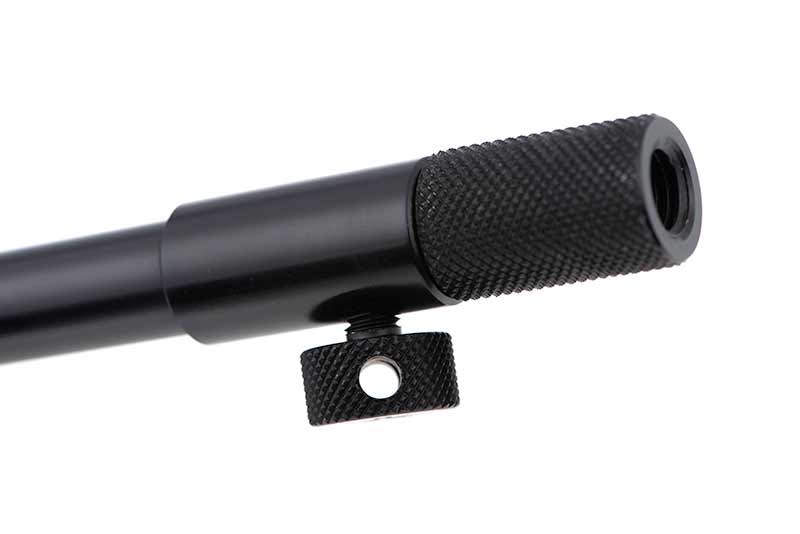Eloxované vroubkované utahovací šrouby s otvorem pro maximální utažení s pomocí nástroje Black Label Slim Tightening Tool.