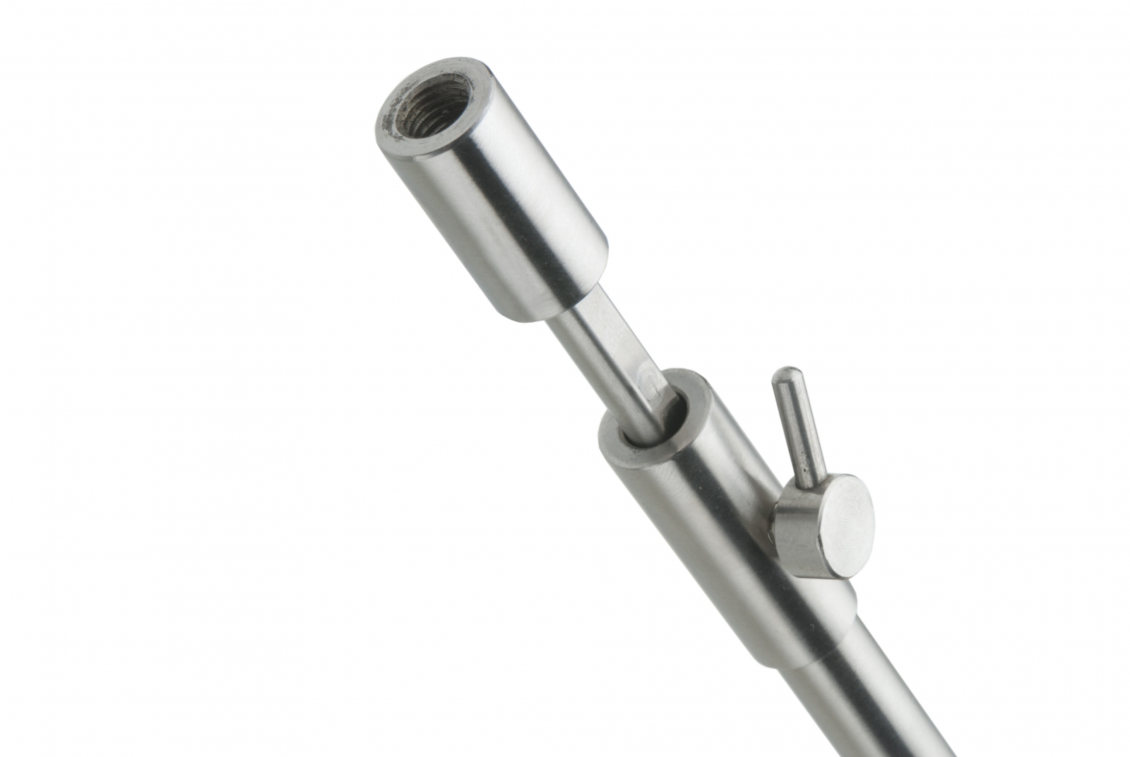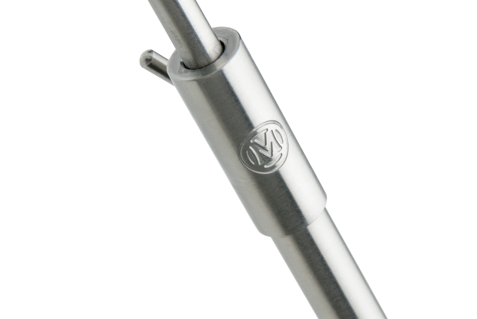 Nerezová vidlička s extrémně efektivním zavrtávacím hrotem. Vnitřní část je z plného nerezového profilu ve tvaru písmene D, který zabraňuje protáčení při utažení aretačního šroubu.