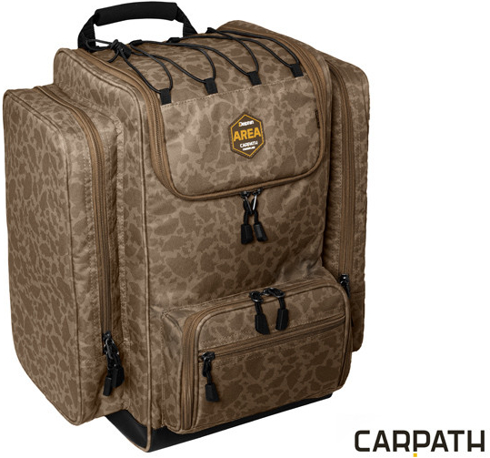 Batoh je vybaven kvalitními zipy. Vnější zipy jsou opatřeny plastovými taháčky. Design tašky doplňuje naše jedinečná hnědá CARPATH kamufláž se siluetami kaprů.
