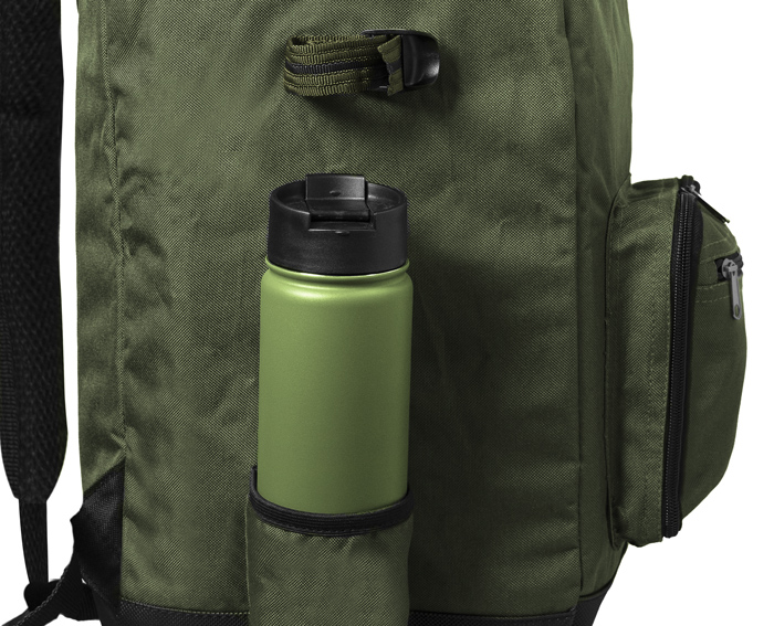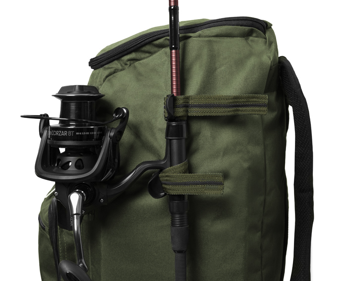 Celý batoh je šitý z nepolstrované, ale zato kvalitní zelené látky. Ta je navíc ve spodní části doplněna o pogumovanou nepromokavou vrstvu, díky které ruksak můžete položit i do trávy pokryté rosou bez jakýchkoliv výčitek. CLASSA má velký centrální prostor, do kterého se vstupuje přes rozměrné víko s výborným přístupem dovnitř. Uzavírání je řešeno praktickým a kvalitním zipem. V přední části se nachází větší kapsa, na které je navíc zipovatelná přihrádka. Pohodlně si tu odložíte důležité věci jako doklady, peněženku, či případně mobilní telefon. Obě strany batohu jsou vybaveny otevřenou kapsou a nad ní se nacházejí dva popruhy. Vhodné jsou například na uchycení delších věcí, jako například vidliček a určitých typů prutů. Otevřená kapsa v tomto případě může posloužit jako doraz pro tyto předměty. Také je ale možné ji použít k vložení termosky, či štíhlejší láhve s vodou. Nespornou výhodou tohoto batohu jsou kvalitní a polstrované ramenní popruhy s pěnovou výplní, které snižují tlak na ramena při nošení plně zatíženého ruksaku. Ve vrchní části jsou propojeny, čímž vzniklo pohodlné poutko pro přenos batohu v ruce.