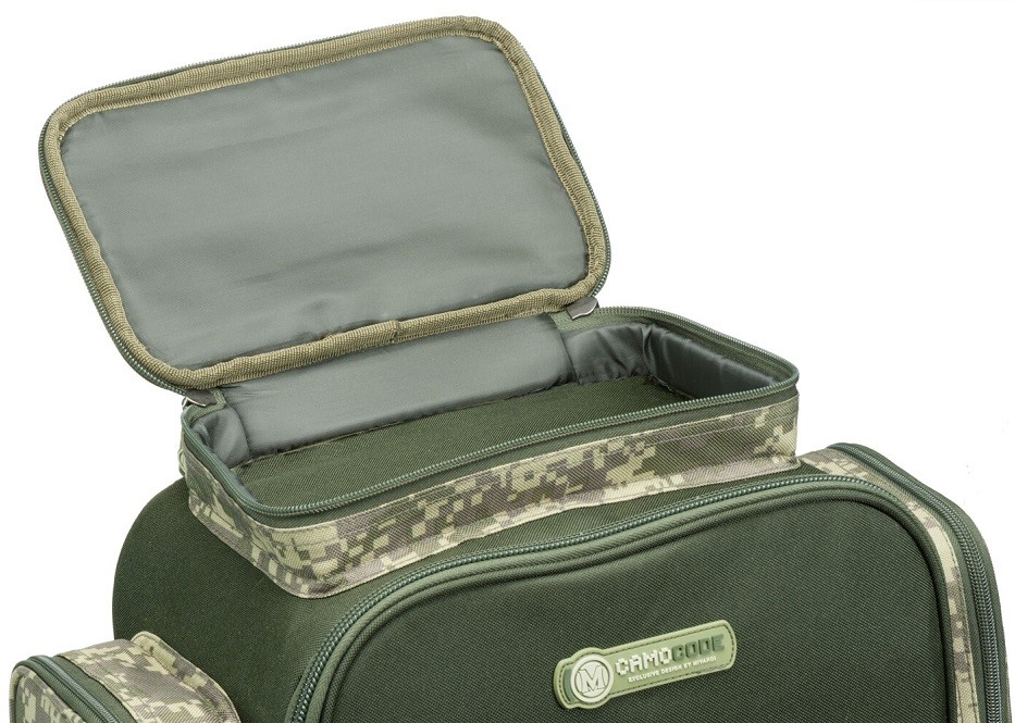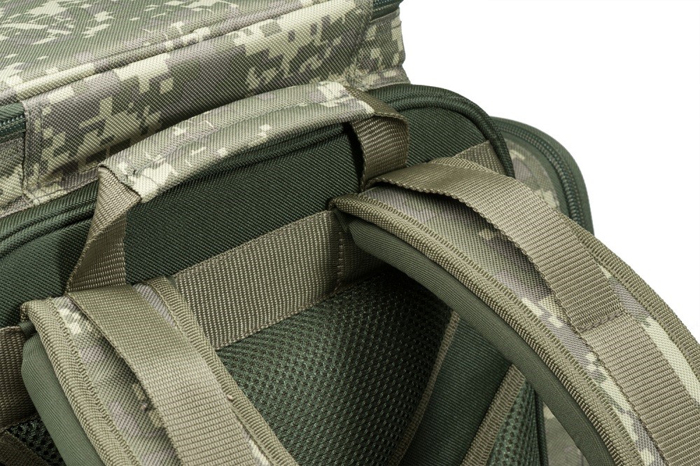To je zajištěno otevírací přední stěnou a velkými kapsami po obvodu. Svojí velikostí je předurčen pro kratší vycházky nebo aktivní rybolov, při kterém se postupně přemisťujete na nová lovná místa. Polstrované popruhy a odvětraná zádová část umožňují velmi pohodlné nošení. Odolný, nepromokavý a snadno omyvatelný materiál B POL600D v CamoCODE designu včetně originálních táhel zipů podtrhují prémiovou kvalitu tohoto batohu.