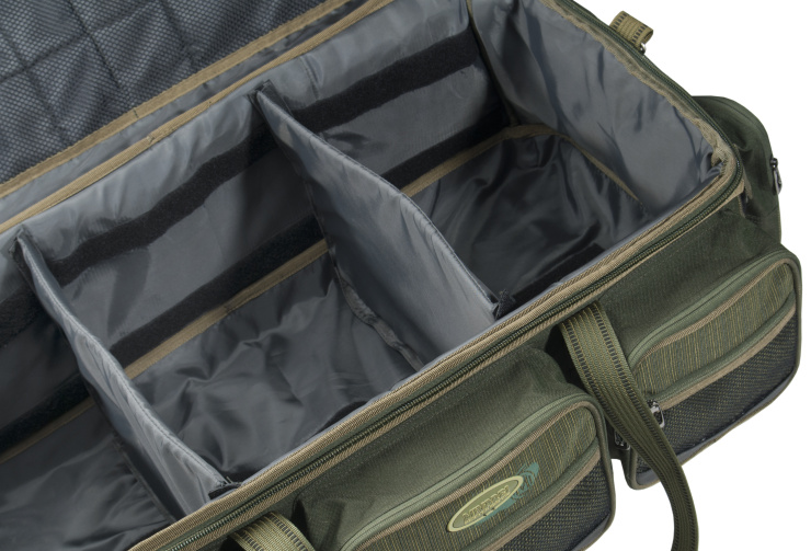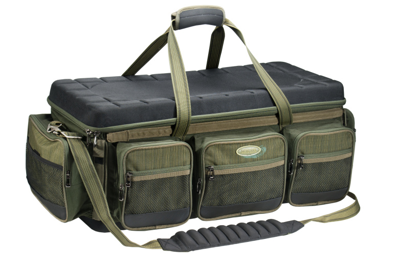 Několik vnitřních a pět velkých kapes po obvodu slouží k uložení příslušenství. Tuhé víko dobře poslouží jako stolek. Vyztužené dno i stěny, masivní zipy a pevné popruhy s kovovými sponami jsou zárukou nekompromisní kvality tohoto extrémního zavazadla.