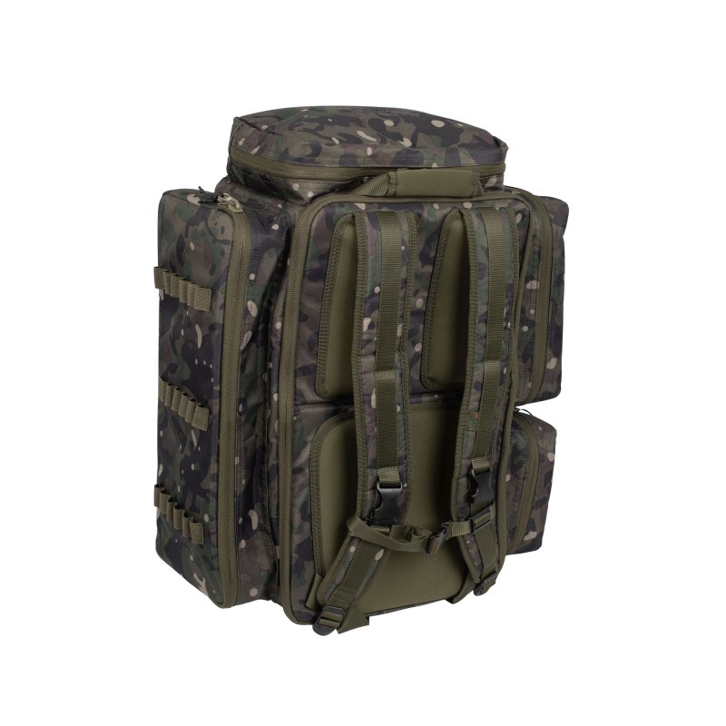 Dokonale se hodí pro mobilní rybaření nebo i delší výpravy a nízkoprofilový design umožňuje jeho snadné uložení pod křeslem. Při položení naplocho se snadno dostanete ke všem klíčovým oblastem, takže je ideální pokud chytáte s vozíkem nebo se hodně pohybujete. Bylo upraveno otevírání a posunuty jsou i ramenní popruhy, aby víko batohu fungovalo plně jako samonosný funkční stůl.