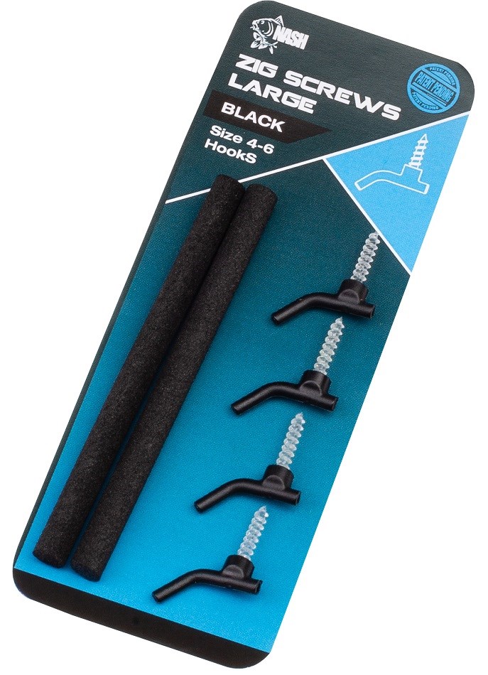 Zig Screws nyní k dispozici ve velikosti Large, tak aby vyhovovaly větším velikostem háčků (4–8) pro lov na zig rig, při lovu těch největších kaprů.