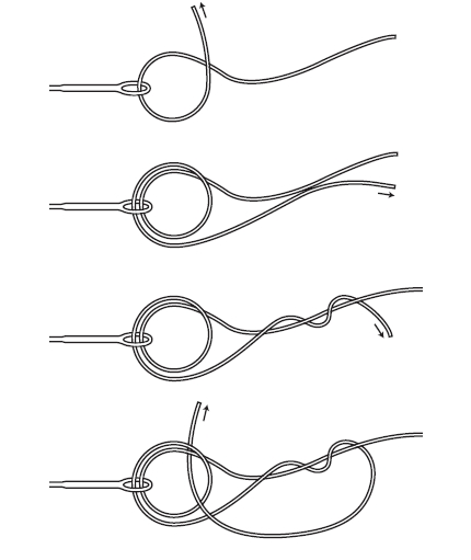 Nejlepší uzly pro něj jsou Palomar, Grinner s 5ti otočkami nebo bezuzlový vázání.