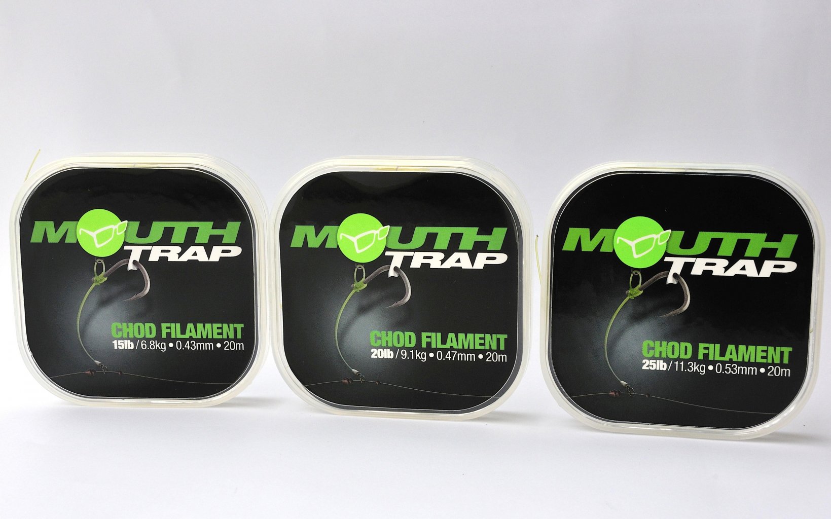 Mouthtrap – tuhý návazcový vlasec, byl vyvinut speciálně pro vytvoření dokonalého ztuženého návazce, který by se nekroutil a nezamotával. Mouthtrap je k dostání v 15lb, 20lb a 25lb, v přirozeném přírodním odstínu, který splyne s každým okolím, což je prioritou Teamu Korda. Takže pokud chcete získat dokonalý ztužený materiál, potom zkuste Mouthtrap, určitě nebudete zklamáni! Během testování se projevila jedna vlastnost, pro kterou Mouthtrap všichni naši testéři velmi chválili, a to že se s tímto materiálem pracuje mnohem snadněji, než s jakoukoli jinou "ztuženkou" na trhu. Není třeba ho před použitím zahřívat nad horkou parou, což během rybaření zdržuje a vyžaduje extra úsilí. Díky jeho unikátnímu složení a vysoké paměti, si tento materiál zachová i zakřivení, pokud ho tak zformujeme. Můžeme tak získat dokonalý ztužený návazec pro použití s pop-upem. Jinými slovy jsme vyrobili nejdokonalejší ztužený návazec z vlasce na současném trhu.