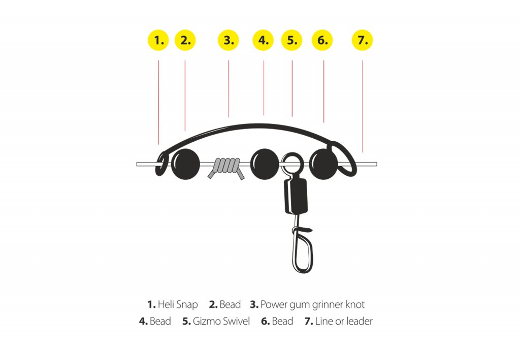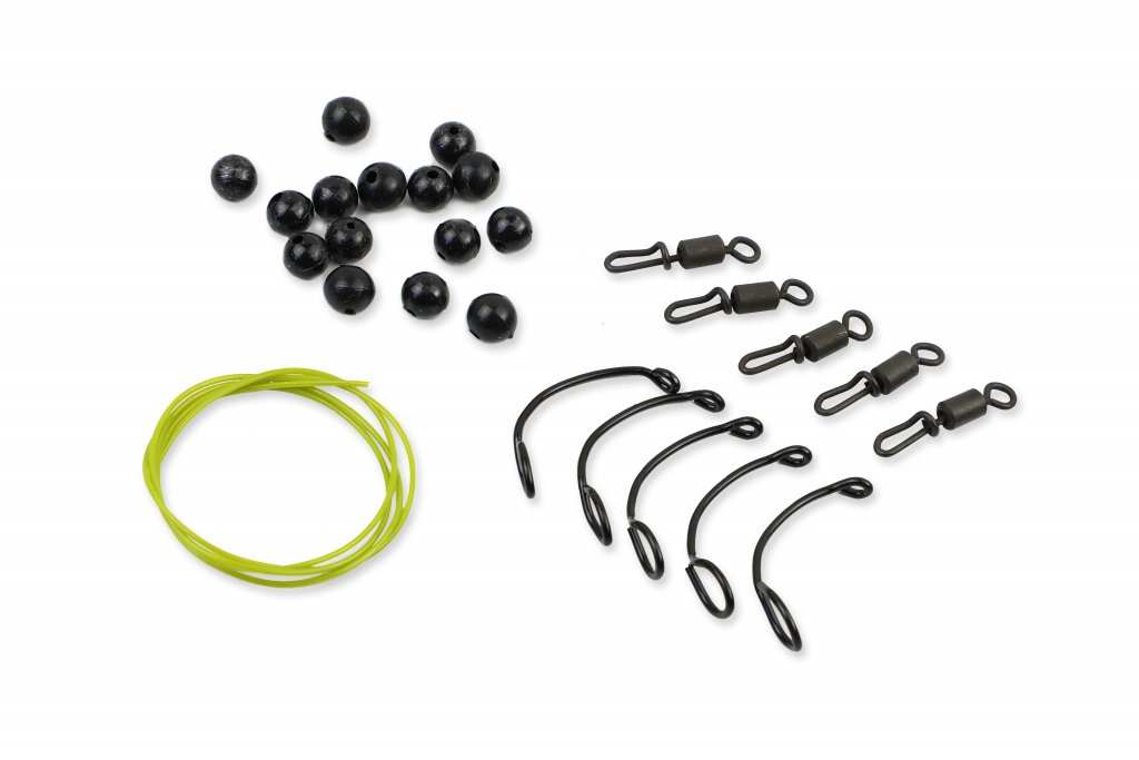 Sada pro výrobu montáží Running Helicopter rig. Ideální pro použití s monofilními vlasci, fluorocarbony, nebo leadery. Sada obsahuje power gumu k vázaní stoperovýh uzlů mezi dvěma malýma korálky, korálky, rychlo výměnný obratlík a svěrku.
