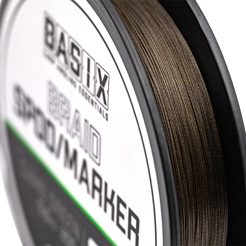 Díky vysoké nosnosti jej můžete používat bez nutnosti požití šokového návazce, díky čemuž se mnohem efektivněji používá . Basix Spod/Marker Braid je vyrobena z hustě tkaných vláken s hedvábně hladkým povrchem, což také napomáhá nahazování na větší vzdálenosti. Je vyráběna v nenápadné barvě Camo Green a dodává se na 200m cívkách, což znamená, že u některých typů navijáků se doporučuje použít podkladový vlasec – velikost této cívky zajišťuje, že nenaplníte naviják stovkami metrů drahé šnůry, která nikdy neuvidí denní světlo!