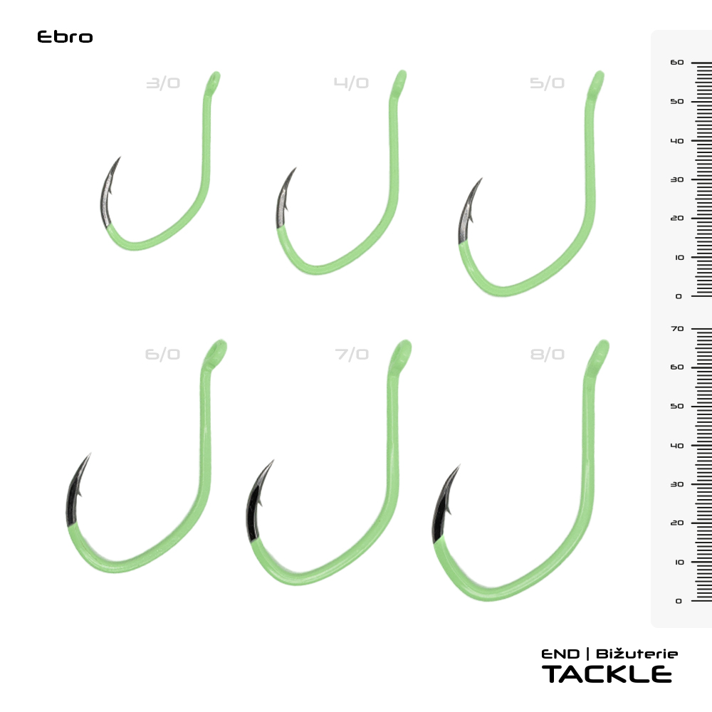 K lovu sumců se využívají téměř tři desetiletí a jejich unikátní tvar je odzkoušen rybáři i rybami na lokalitách po celé Evropě. Zcela jistě se jedná o nejpopulárnější sumcové háčky. Osvědčily se ale i při lovu jiných velkých sladkovodních a mořských druhů ryb. Háčky EBRO jsou vyrobeny z vysoce kvalitní uhlíkové oceli, která dává háčkům potřebnou pevnost a ostrost. Tyto háčky jsou ve svém použití velmi univerzální. Můžete je využít při lovu na trhačky, bójky, podvodní splávky, vábničku, splavování či je osadit i na své fireballové systémy při vertikálním rybaření. Všechny velikosti háčků   mají zavařená očka , aby nedocházelo k přeříznutí návazcových materiálů při zdolávání trofejních ryb.