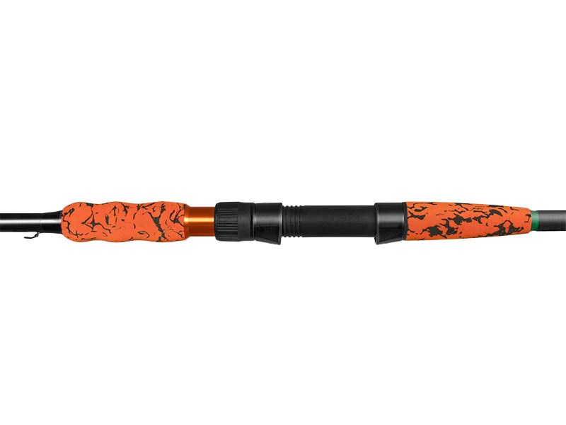 Spolehlivé sedlo je opatřeno utahovací maticí, kterou jsme záměrně osadili z vrchu, aby nedocházelo k nechtěnému uvolňování navijáku během zdolávání. Ergonomicky tvarovaná EVA pěna na rukojeti poskytuje maximálně komfortní úchop prutu při zdolávání. Zároveň je navržena tak, abyste měli dostatečný prostor pro uchopení a nezařezávala se do ní šňůra při použití baitcastového navijáku, který má posunutou osu návinu níže.