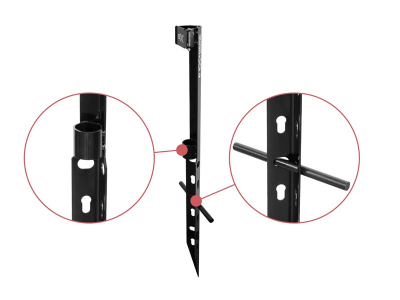 Robustní konstrukce je vyrobena z kovu, který je odolný vůči vnějším vlivům a nechtěnému mechanickému poškození. Spodní část konstrukce je opatřena ostrým hrotem, díky kterému lehce zapíchnete stojan i do tvrdší půdy. K lepšímu zapíchnutí dopomáhají i tři výřezy ve spodní části stojanu, do kterých můžete pro snazší zapichování vložit kovovou tyč, která je součástí balení. Díky masivní konstrukci zůstane stojan Delphin EXTREME po zapíchnutí do země stabilní a pevně osazený na svém místě.
