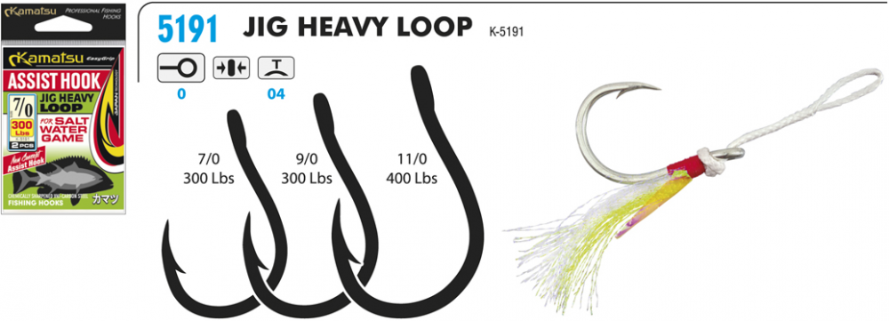 Kamatsu Háčky Assis Hook Jig Heavy Loop 2ks Nosnost: 300lb, Velikost háčku: #9/0