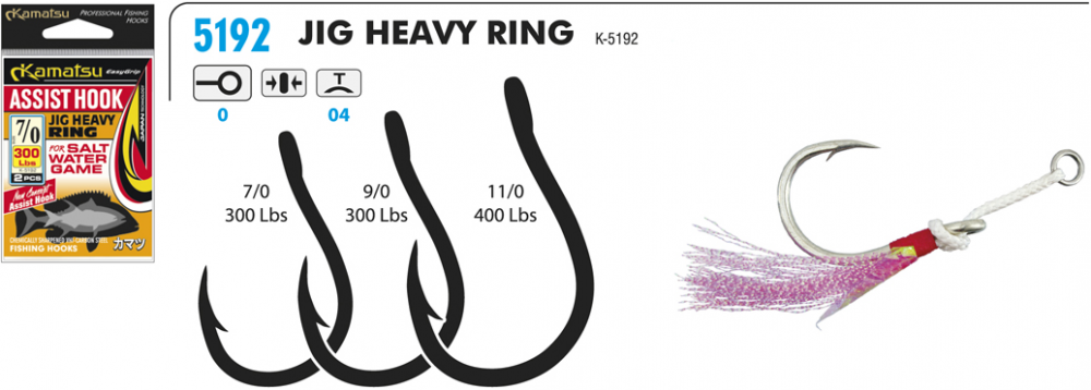 Kamatsu Háčky Assis Hook Jig Heavy Ring 2ks Nosnost: 400lb, Velikost háčku: #11/0