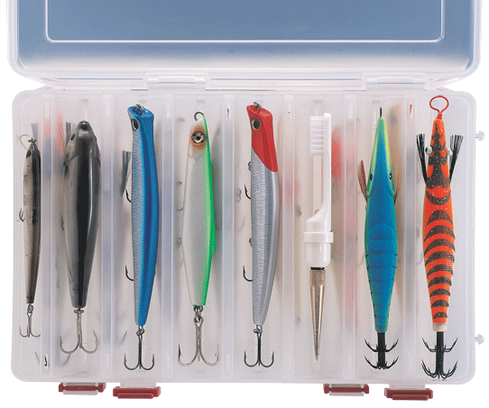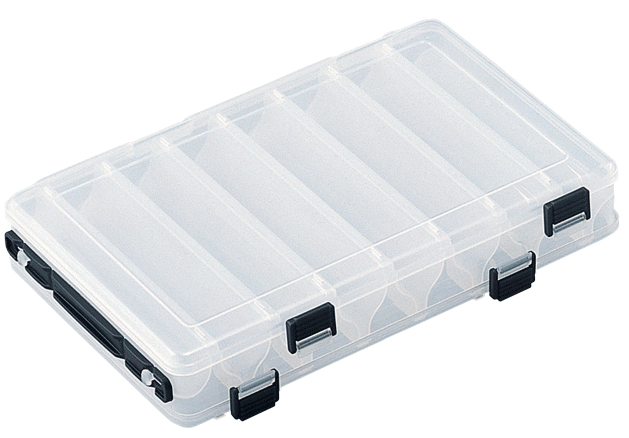 Oboustranná krabička s madlem na ukládání pilkrů, wobblerů. Jedinečné tvarování přihrádek dovolí uložení wobblerů a pilkrů z obou stran při min. tloušťce krabičky.