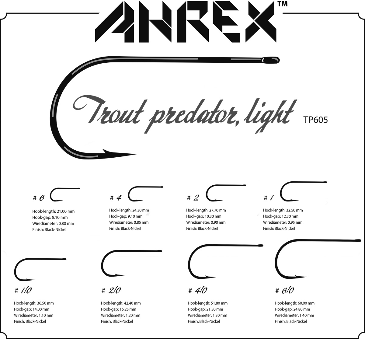 Lehčí verze háčku modelu TP610 s tenkého a přesto silného drátu pro vázání objemnějších streametů s kloubovým tělem. Velká mezera mezi ramínkem a ostnem napomáhá lepším zásekům a jistotu, že se háček nevyřízne z rybí tlamy. Vhodný pro vázání myší a streamerů z muddlerovou hlavou.