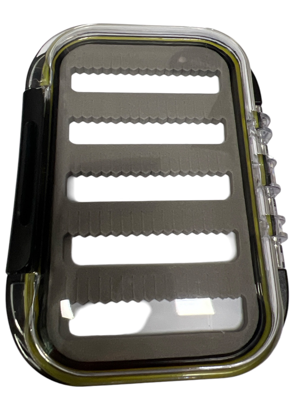 Vypouklá dvířka krabičky zajistí, že se mušky nezmáčknou a nepoškodí. Dvířka jsou průhledná, aby byly mušky vidět, pro lepší orientaci a rychlý výběr. Je vybavena popruhem na krk, ideální pro říční muškaře, kteří rádi brodí nalehko. Krabička je schopna pojmout 170 suchých mušek, ideální pro říční suché mušky a nymfy.