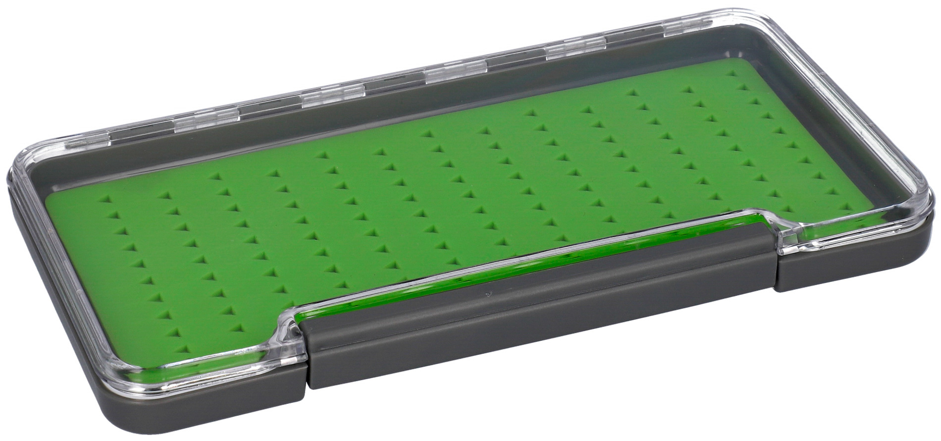 Je vybavena mikro štěrbinami ve velmi husté pěnové výplni, která je vhodná pro všechny velikosti a druhy mušek. Vypouklá dvířka krabičky zajistí, že se mušky nezmáčknou a nepoškodí. Dvířka jsou průhledná, aby byly mušky vidět, pro lepší orientaci a rychlý výběr. Ideální pro nymfy a suché mušky.