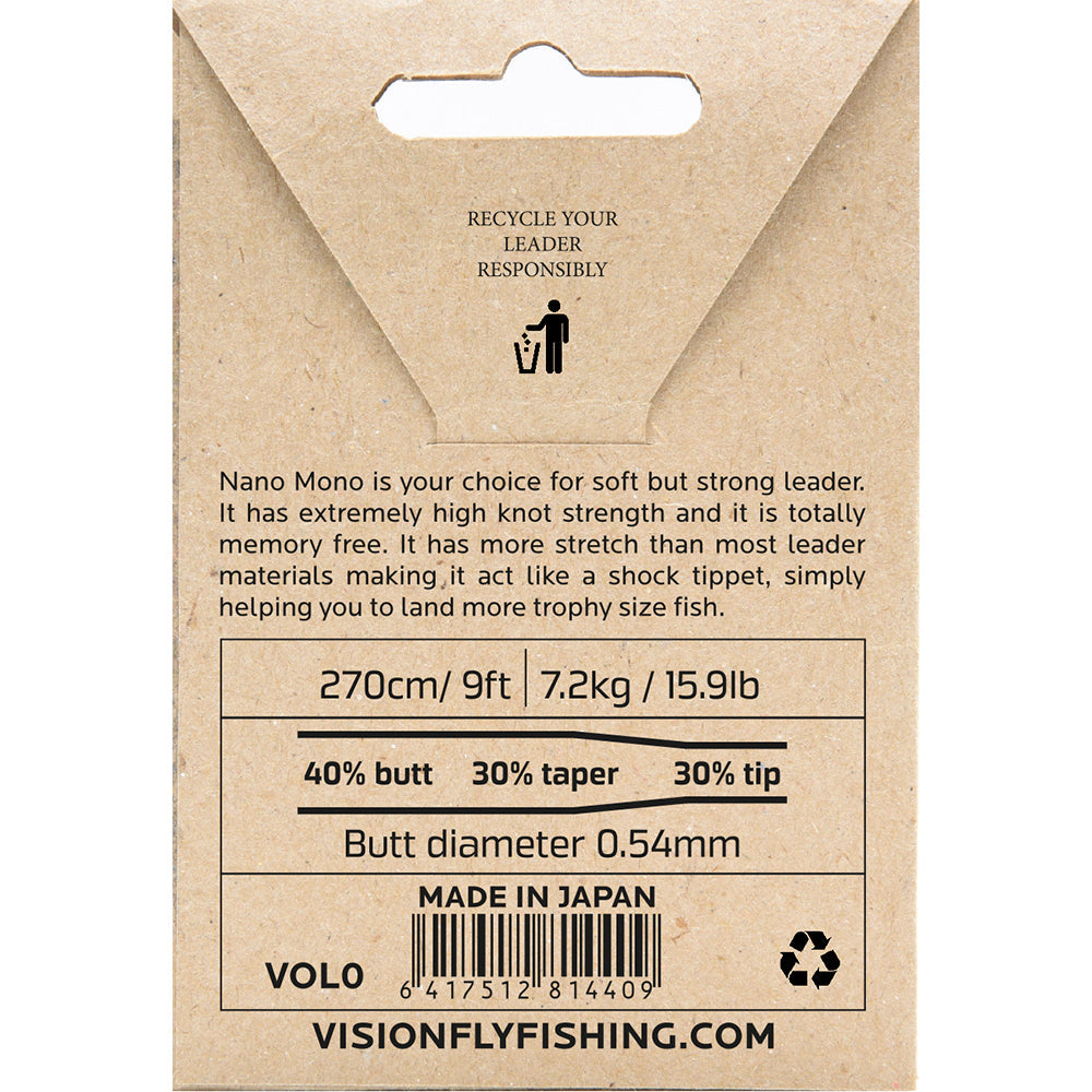Pokud máte rádi měkké a silné návazce, Nano Mono je vaše volba. Má extrémně vysokou pevnost v uzlu a je zcela bez paměti. Má větší roztažnost než většina návazcových materiálů, díky čemuž se chová jako šokový a jednoduše vám pomůže zdolat více trofejní ryb.