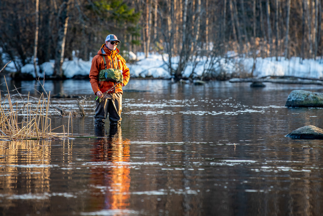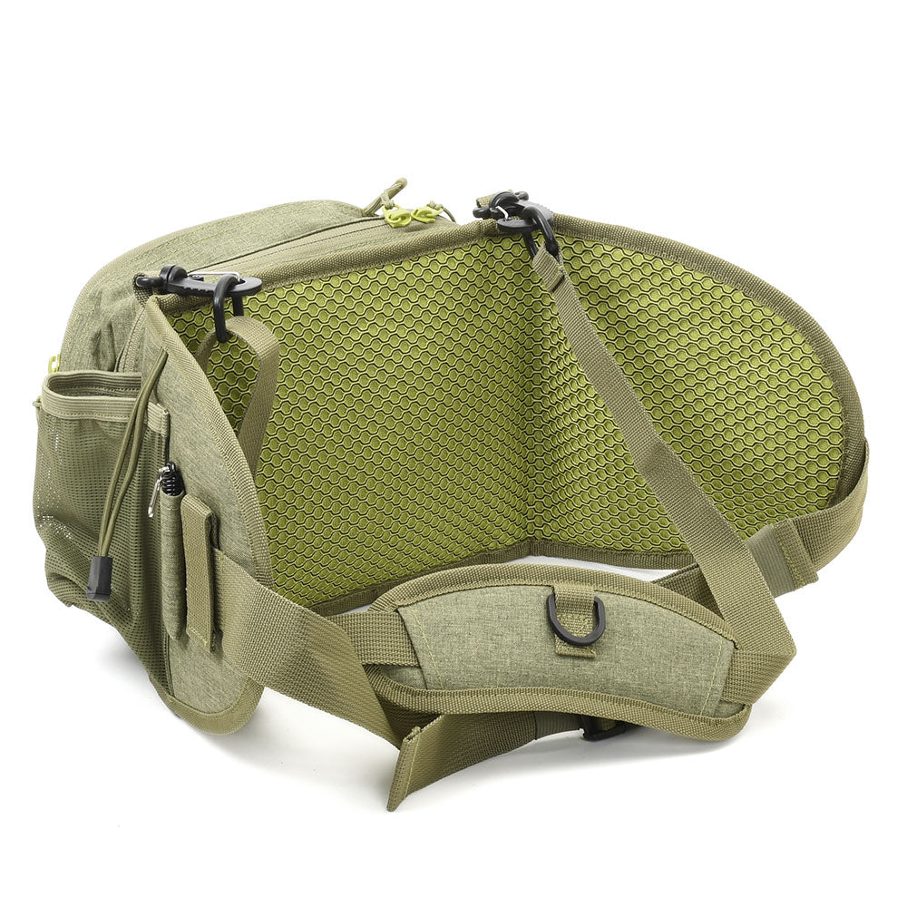 K dispozici jsou dva plastové klipy, kterými lze tašku připevnit na D-smyčky našich broďáků nebo na přední stranu našeho batohu Aqua Day Pack. Tato taška je po stranách dostatečně široká, aby vám poskytla oporu při těžším nákladu a udržela jej stabilní. Na popruhu u krku je D-kroužek pro připevnění podběráku.