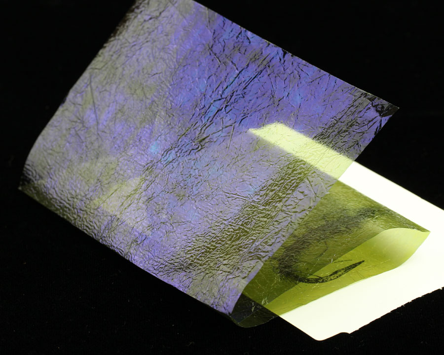 Velmi jemná fólie s UV iridiscentním leskem. Vynikající na hřbítky malých vzorů českých nymf, blešivců a pod.