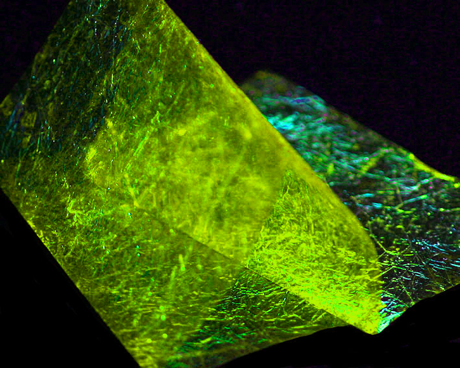 Velmi jemná fólie s iridiscentním leskem. Vynikající na hřbítky malých vzorů českých nymf, blešivců a pod.