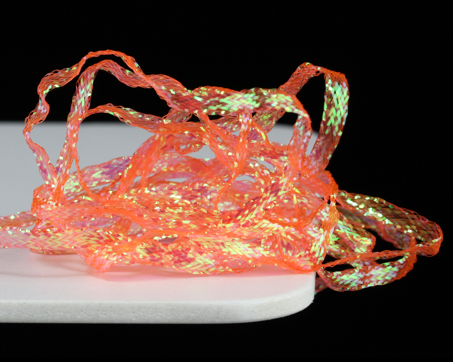Pletená stuha s iridiscentním leskem. Vynikající na hříbtky českých nymf, blešivců, kroužkování streamerů a pod.