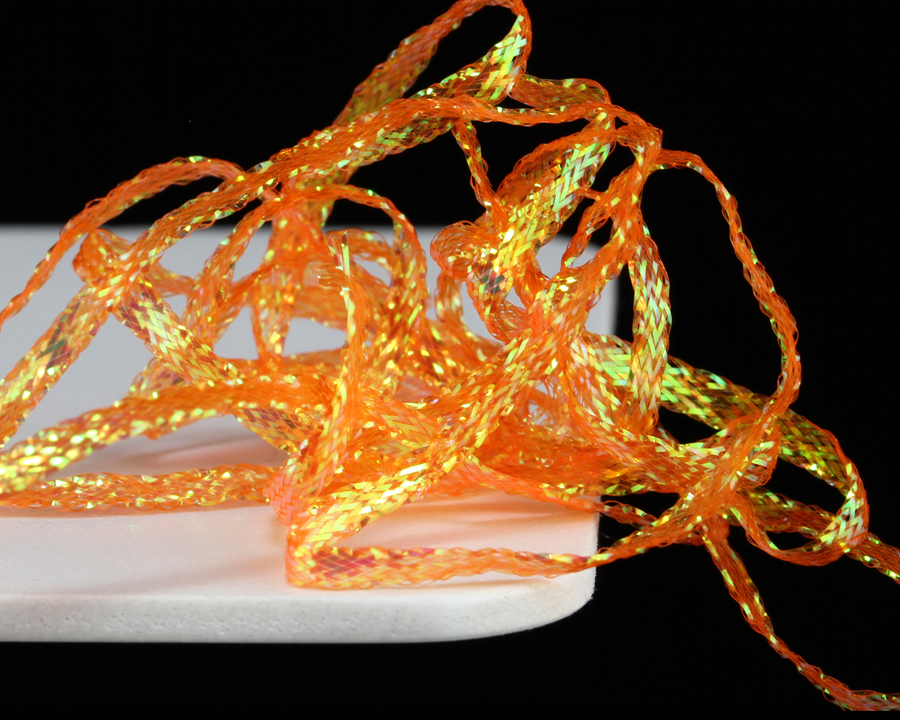 Pletená stuha s iridiscentním leskem. Vynikající na hříbtky českých nymf, blešivců, kroužkování streamerů a pod.