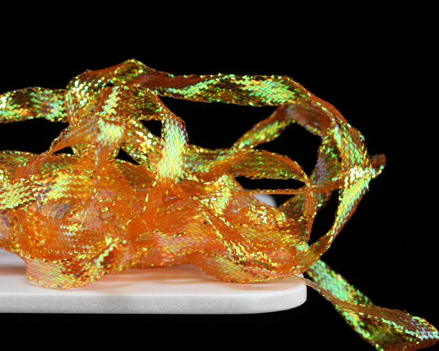 Pletená stuha s iridiscentním leskem. Vynikající na hříbtky českých nymf, blešivců, kroužkování streamerů a pod.