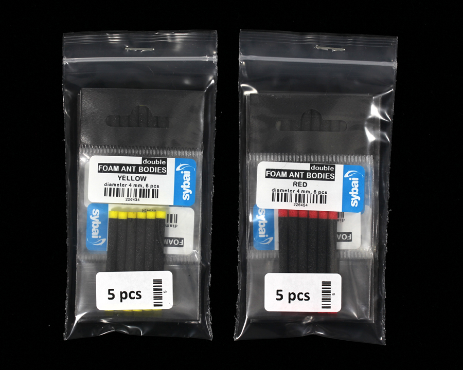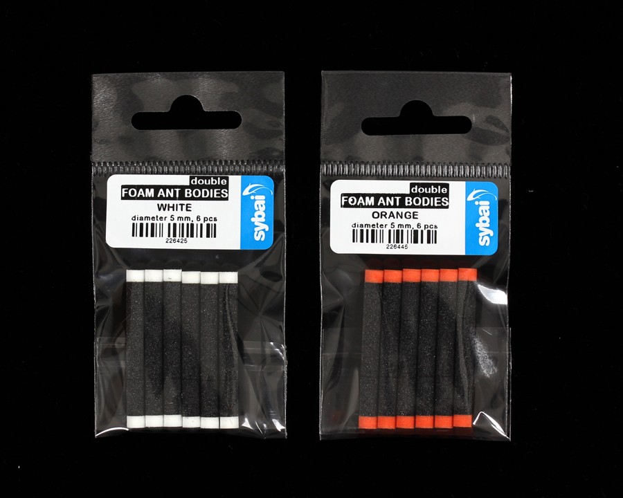 Pěnový váleček ke zhotovení těla mušky např. mravence a pod. Velmi vhodný na "Shuttle Cock" kde barevný terčík přispívá k dobré viditelnosti. Pro snadné vázání a možnost článkovat tělíčko, je vyroben z měkké pěny.