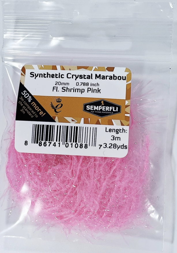 Společnost Semperfli posunula přírodní marabu na vyšší úroveň. Vyvinula úžasné syntetické křišťálové marabu přichycené do šenilky, které má úžasnou průsvitnost a délku vlasu 20 mm. Lze je jednoduše omotat kolem háčku a vytvořit tak ocásky nebo tělíčka streamerů.