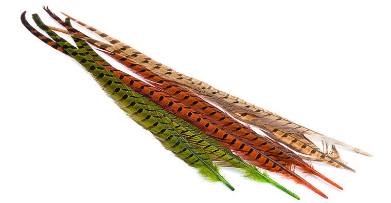Kvalitní výběrové peří z bažanta je základní materiál pro každého vazače. Ocasní pero používané k vázání nymf s bažantím ocáskem, ale také obecně skvělé na tělíčka, ocásky, hřbítky a nožičky mušek.