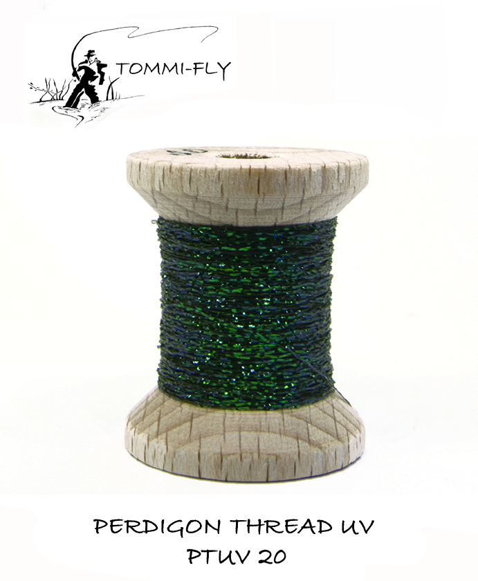 Nit je doplněna o zelený nebo modrý lesk. Tuto nit lze využít nejen pro vázání Perdigones, ale také do promotávek a dalších typů mušek, kde hledáte skvělou viditelnost a atraktivní vzhled