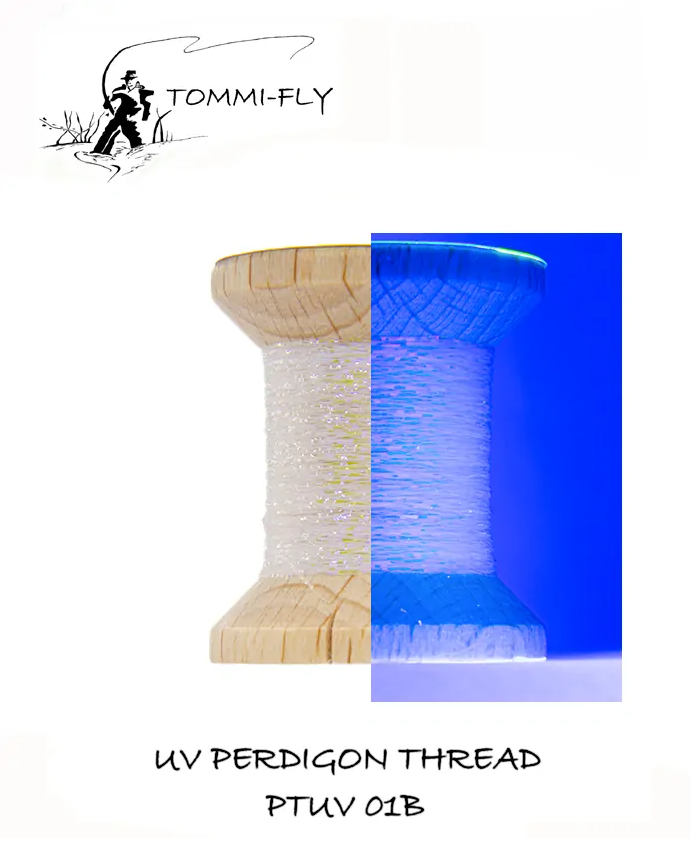 Nit je doplněna o zelený nebo modrý lesk. Tuto nit lze využít nejen pro vázání Perdigones, ale také do promotávek a dalších typů mušek, kde hledáte skvělou viditelnost a atraktivní vzhled