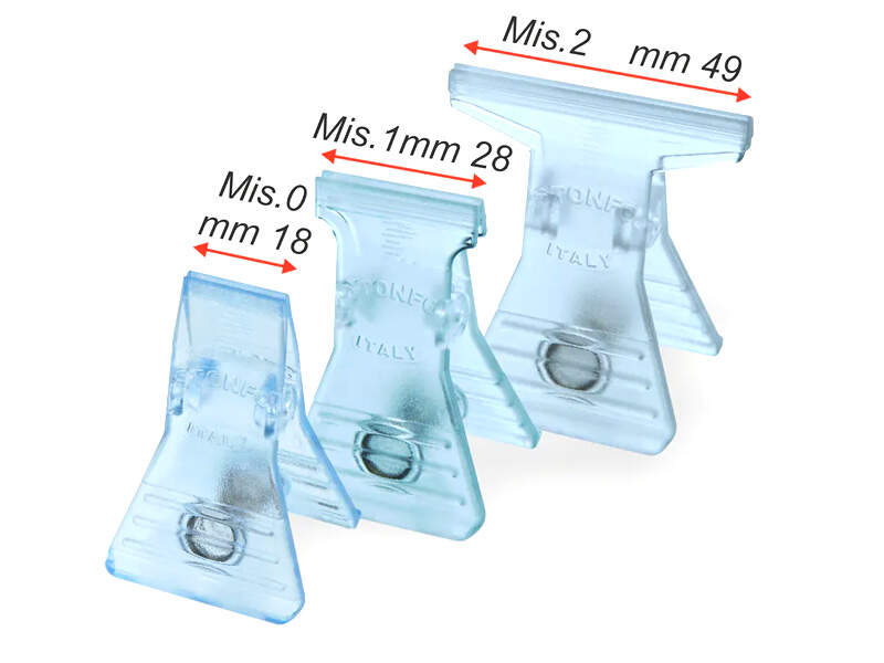 Jsou vyrobeny z pevného průhledného plastu a jejich tvar je navržen tak, aby usnadňoval použití. Zajišťovací plochy mají mírné zdrsnění, které umožňuje dokonalé upnutí vláken. K dispozici ve 3 různých velikostech.