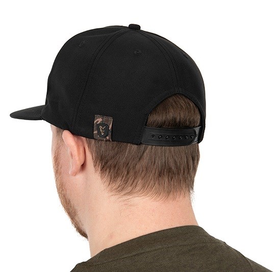 Natavitelná Black Camo kšiltovka Fox s rovným kšiltem.