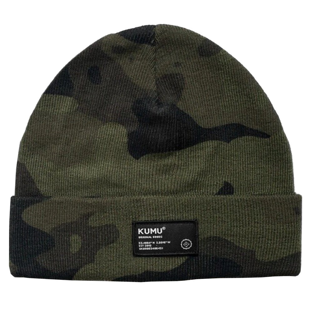 Kulich z jemného žebrovaného úpletu v našem camo DECEPTION vzoru s tkanou nášivkou na boku Jedna velikost pro všechny.