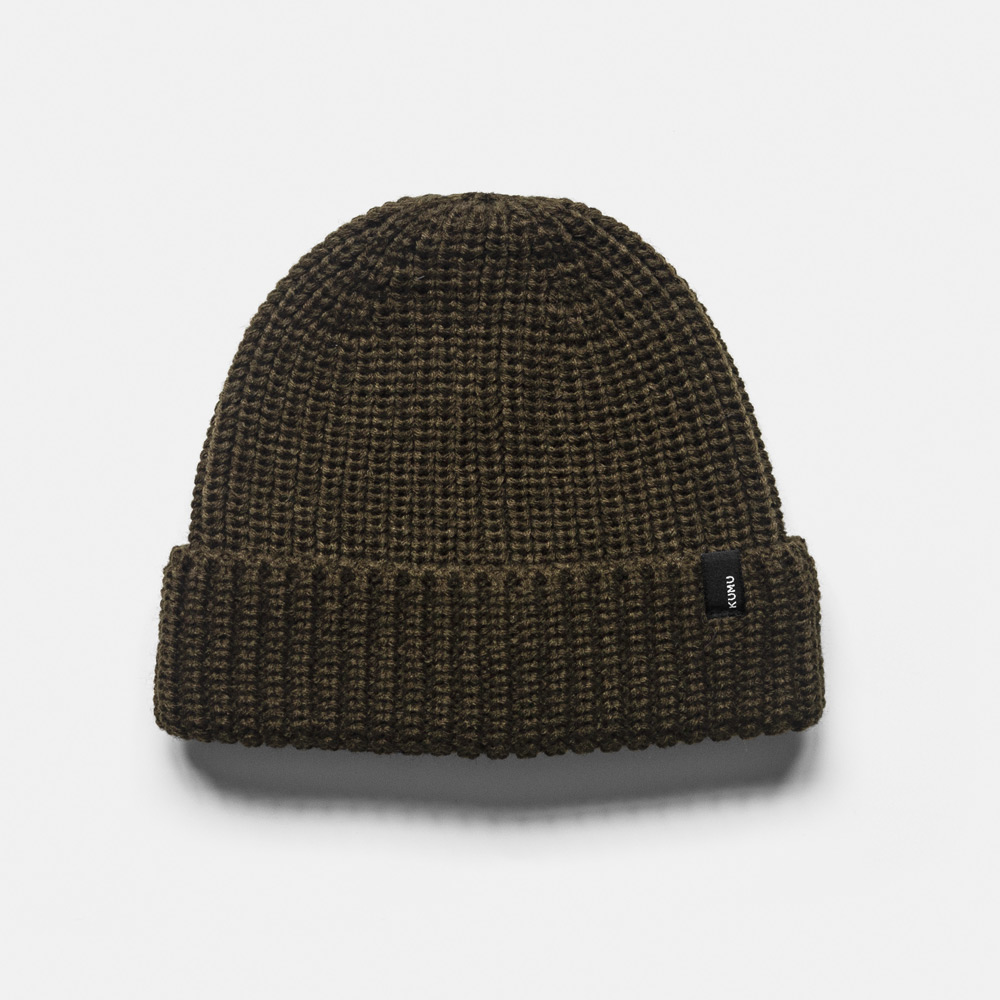 Super měkká a robustní žebrovaná pletenina v černé barvě s tkaným značkovým poutkem na ohrnutí univerzální velikosti. Dostupné v khaki, černé, hořčicové a šedé barvě.