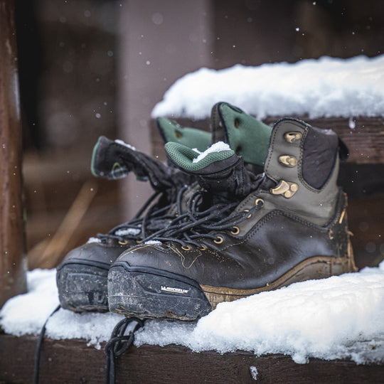 Dobře padnoucí kožená obuv, která poskytuje skvělou oporu při brodění i chůzi a je velmi pevná.