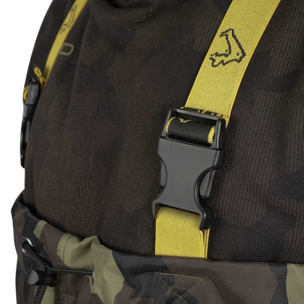 Silná nylonová tkanina 420 je známá svou pevností a odolností proti vodě, díky čemuž zůstanete v suchu. Tkanina obsahuje náš oblíbený jedinečný maskáčový design, který je vytvořen pomocí designu rybí hlavy převzatého z našeho loga. Žlutý elastický ramenní popruh s jemným logem Avid. Popruhy jsou připevněny pomocí snadno ovladatelné vyztužené plastové spony, díky čemuž můžete popruhy snadno připevnit a odpojit. Zvláštní pozornost jsme věnovali designu bot, zvolili jsme měkčí gumovou botu s nízkým střihem, aby se snadno dostali dovnitř a ven. Gumová bota měkčího stylu je nejen super pohodlná, ale umožňuje kompaktně srolovat a uložit v tašce, nebo v batohu. Věříme, že nízký střih je speciálně důležitou vlastností těchto prsaček. Na hrudníku je vnitřní malá kapsa. Na vnější straně jsou vyztužené části na kolenou a zadku.