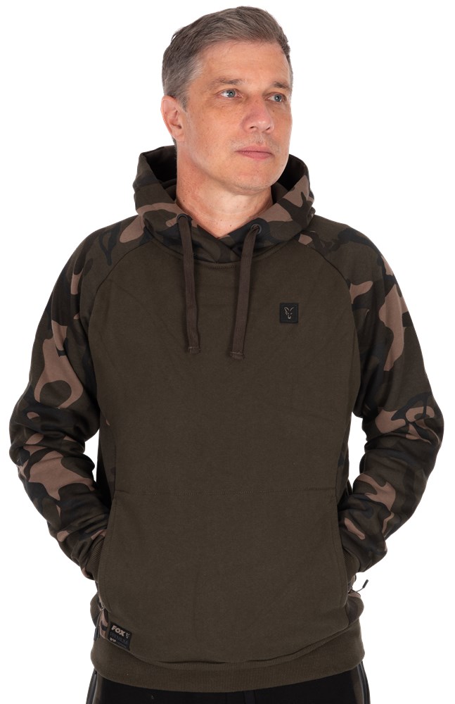 Luxusní mikina s kapucí na zip v prémiové kvalitě a Fox khaki/camo vzoru.
