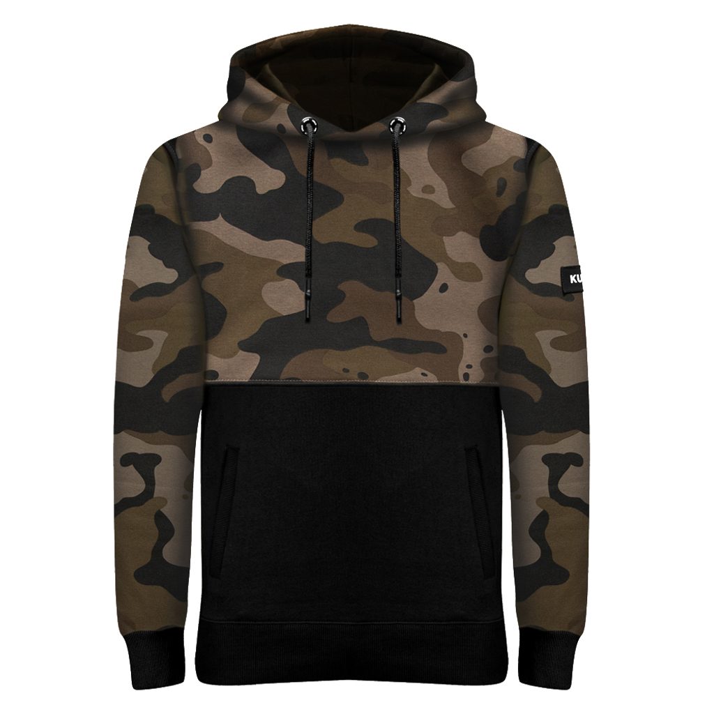 Představujeme KUMU mikinu DECEPTION s naším jedinečným maskovacím vzorem v tlumených khaki/hnědých tónech.Vyrobeno z naší 320g/m2 česané tkaniny, která je dokonale měkká na dotek a neskutečně pohodlná. 4barevný celo camo potisk s kontrastní černou spodní částí těla. Tkaná nášivka na paži a potisk s ikonou loga KUMU na spodní části zad.
