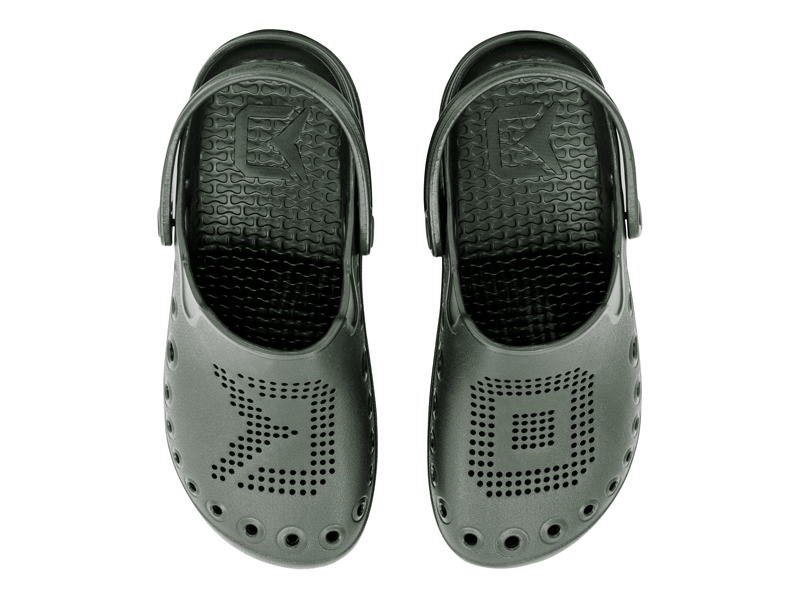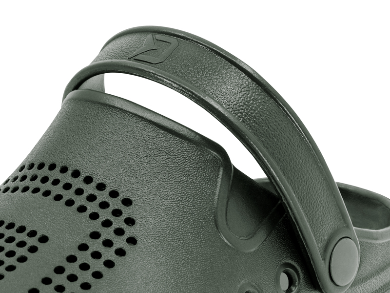 A výsledek? Delphin OCTO – ultra lehké pantofle z EVA pěny, inspirované přírodou, kompletně navrženy a vyráběny v Evropské unii! Vzhledem k tomu, že během rybolovu je nutné často chodit po nerovném terénu, jsme se při vývoji zaměřili na podešev, která je podstatně pevnější a masivnější ve srovnání s levnějšími konkurenčními modely. Právě to zaručuje, že chození v těchto vsuvkách bude maximálně komfortní a dokonale odfiltruje nerovnosti terénu. Při podešvi ještě chvíli zůstaneme. Právě tam začíná příběh názvu OCTO. Stylizovali jsme ji totiž do tvaru přísavek chapadel chobotnice, což zaručuje výborný grip za každých podmínek. Právě chobotnice, anglicky OCTOpus, anebo latinsky OCTOpod byly inspirací pro kompletní design a název ve zkrácené forme – OCTO. Dalším sofistikovaným prvkem jsou velké postranní otvory, jejichž prioritním úkolem je starat se o odvětrávání a celkovou vzdušnost v této obuvi. Záměrně nejsou navrženy ve výši podrážky, jak to bývá standardem, ale o něco výše. Právě tento detail hraje významnou roli během pobytu na břehu, či mělké vodě. Tím, že otvory jsou o něco vyšší nad vnitřní stélkou je téměř eliminováno nechtěné nabírání písku či kamínků mezi podrážku a chodilo. Vaše chodidla jsou tedy chráněny v maximální možné míře. Kromě těchto otvorů slouží k odvětrávání hustá perforace umístěna ve vrchní části. Ta je záměrně vytvarována na jedné straně do symbolu D z loga Delphin, na druhé vsuvce zase kraluje symbol O, jako počáteční písmeno názvu OCTO.