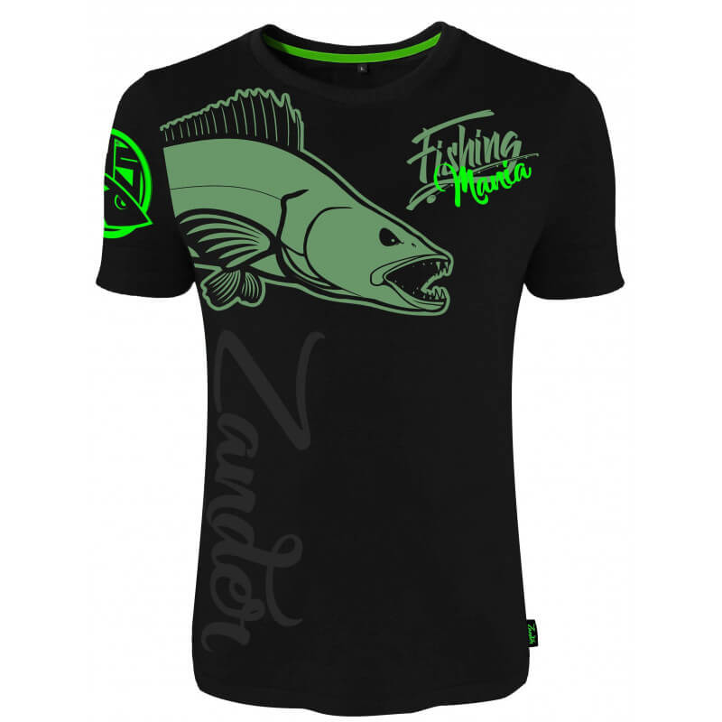 Stylové a pohodlné tričko rovného střihu s precizními detaily, jako je reliéfní tisk a zelená kresba candáta s textem „Fishing Mania“.