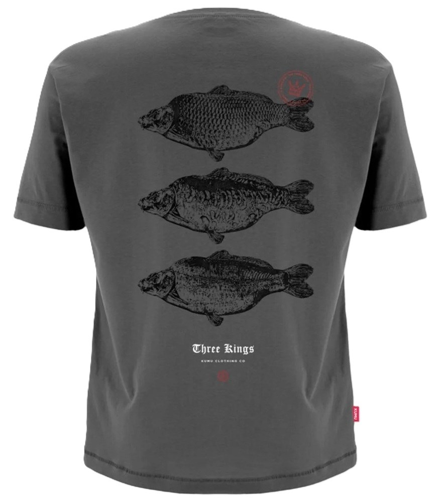 Naše tričko 3 Kings bylo ručně vyrobeno technikou známou jako „pointilismus“, která využívá miliony drobných teček k vytvoření světlých a tmavých ploch. Oslavujeme 3 druhy kaprů královských, které všichni lovíme. Tříbarevný sítotisk na super měkké 150g organické látce „břidlicově šedé“ s tkaným bočním štítkem,
