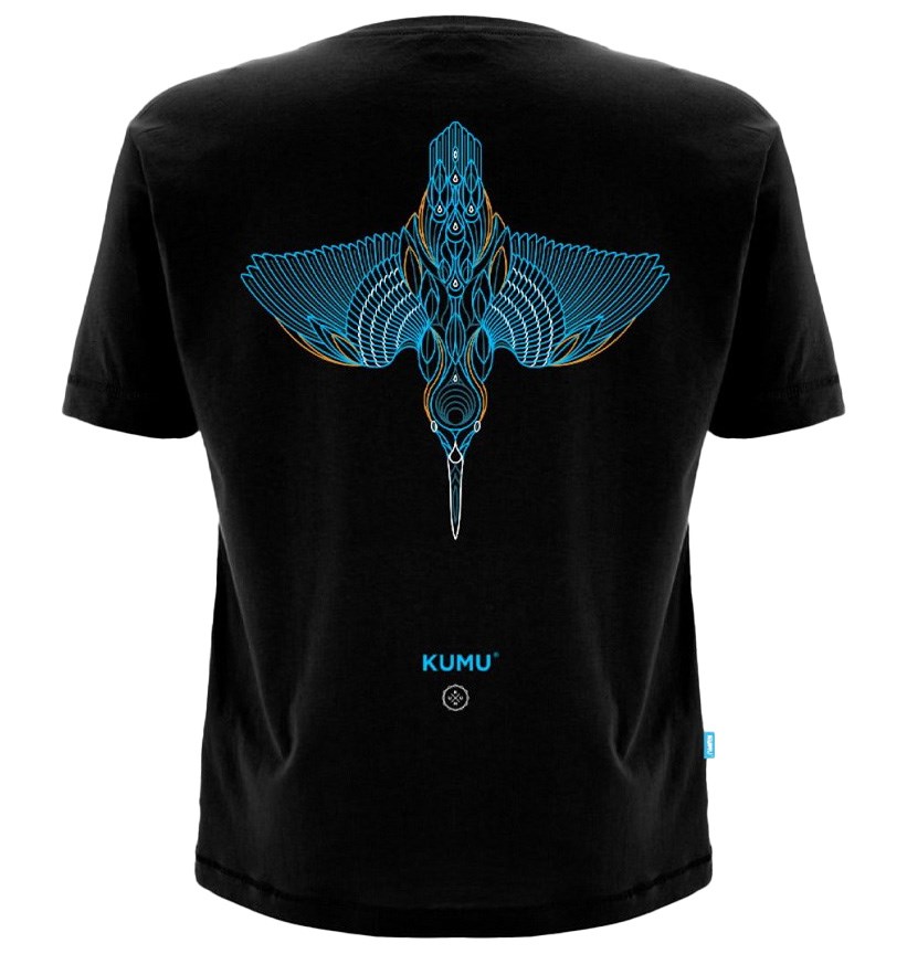 Ledňáček je bezesporu ikonickým rybářským návštěvníkem. Mnoho z nás touží po fotografii, kde sedí na naší udici. Při tvorbě tohoto motivu jsme použili ilustrace klíčové linie, abychom dosáhli pocitu rychlého pohybu, ve kterém následně krásně vyniknou elektricky modré a měděné odstíny. Celý efekt pak působí téměř 3D dojmem. Čtyřbarevný sítotisk na naší super měkké bavlněné látce 140g/m2 s tkanými detaily boční záložky.